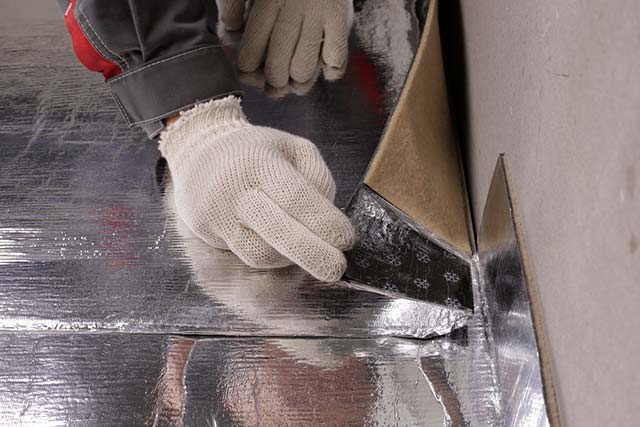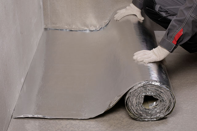 Fiberglass reinforced SBS-modified bitumen membrane with soundproof fabric TECHNONICOL SOUNDSTOP SUPER prevents the spread of an impact noise, which is transmitted through the floor slabs. The material is used indoors for the construction of soundproofing and waterproofing layer in systems of "floating" flooring, heated flooring, framed flooring and interior partitions. Special non-woven fabric on the bottom side of the membrane grants effective soundproofing properties to the material, while aluminized film on the top side helps to reduce the influence of electromagnetic fields.